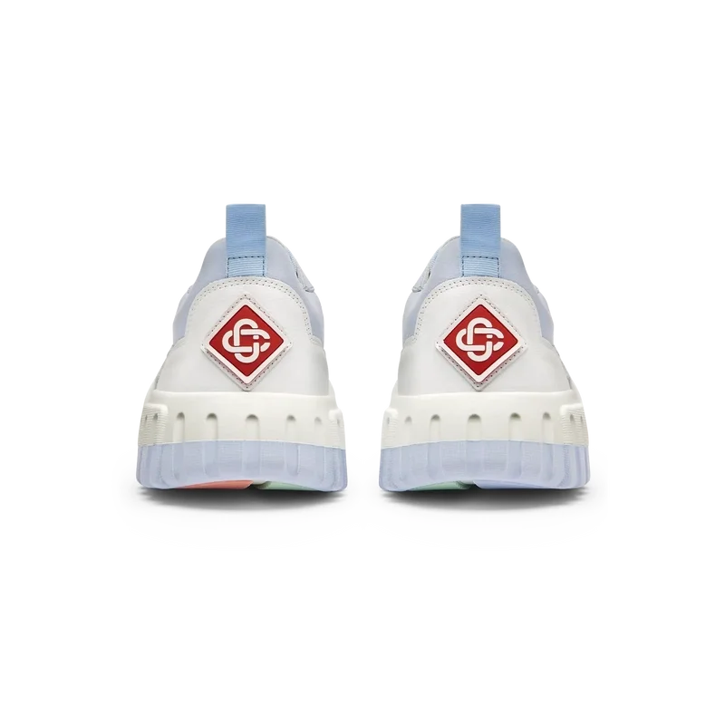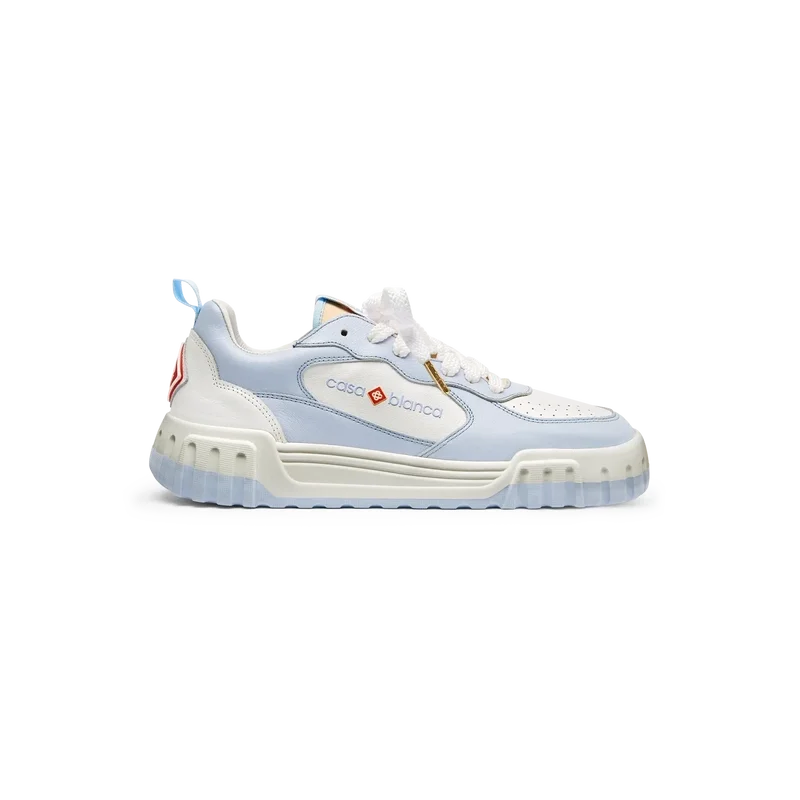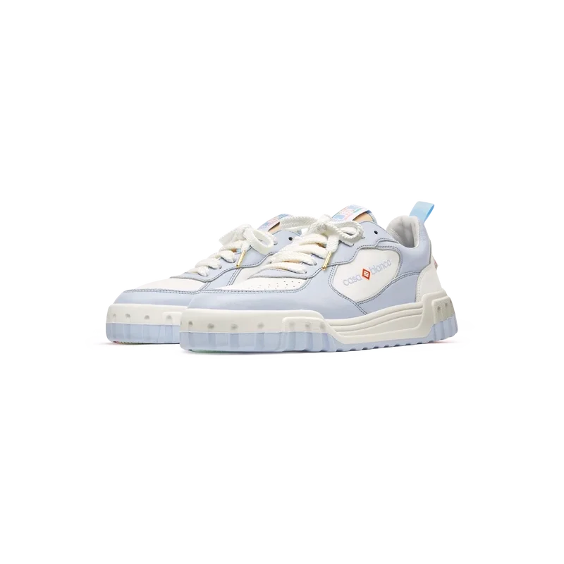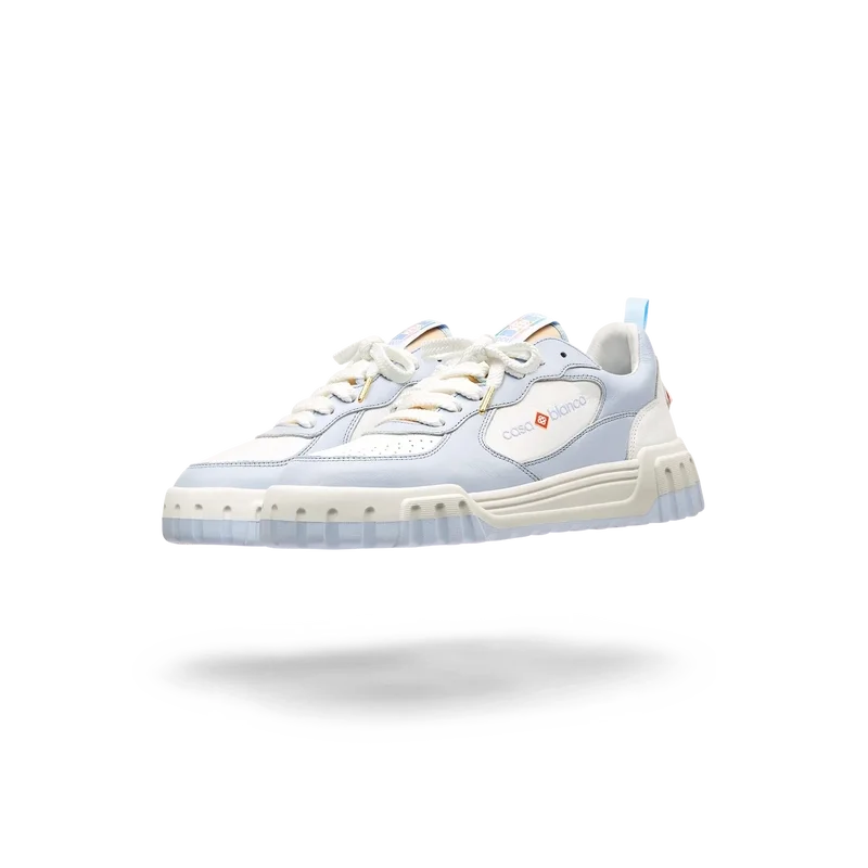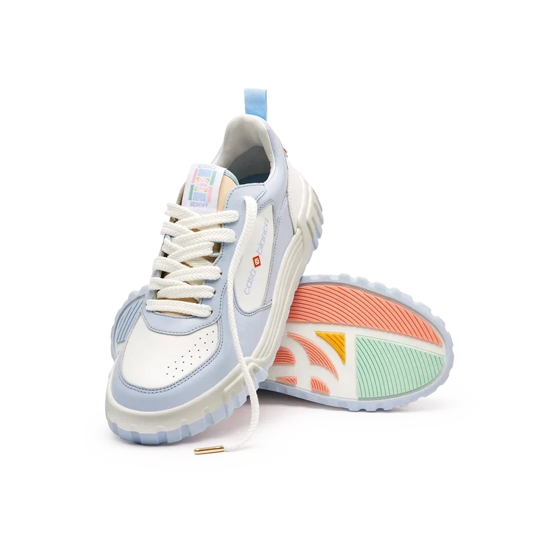 La tomaia delle Scarpe presenta linee integrate e fluide che richiamano le silhouette iconiche degli anni ’90. Il marchio Casablanca è ben visibile su tutta la superficie, compreso il motivo a diamante caratteristico del marchio sul tallone, il logo in silicone sui pannelli laterali e l’etichetta sulla linguetta e la soletta con motivo intrecciato ispirato al campo da tennis, da cui deriva il nome “Court”.