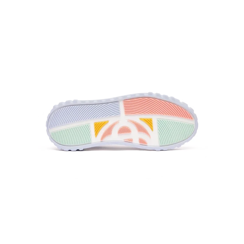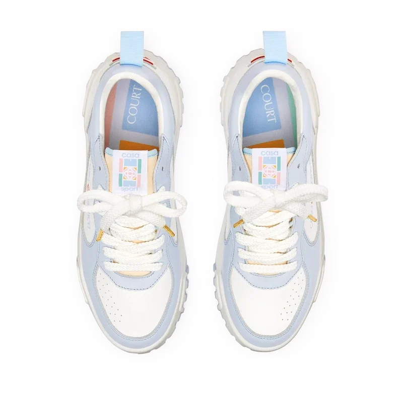 Il linguaggio stilistico della sneaker Court riflette le silhouette iconiche degli anni ’90. I colori presenti sulla suola in gomma sono una combinazione dei codici raffinati del tennis e dell’architettura classica e creano una palette unificata su tutta la scarpa, con un’attenzione particolare ai colori primari controbilanciati dal bianco del tennis per creare una storia cromatica incentrata sullo sport.