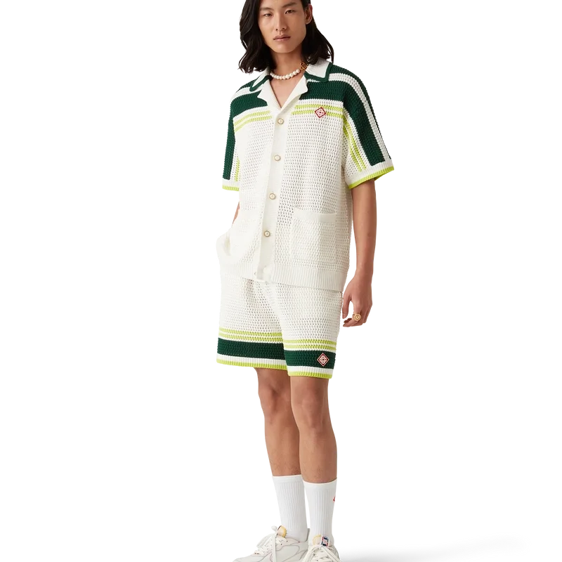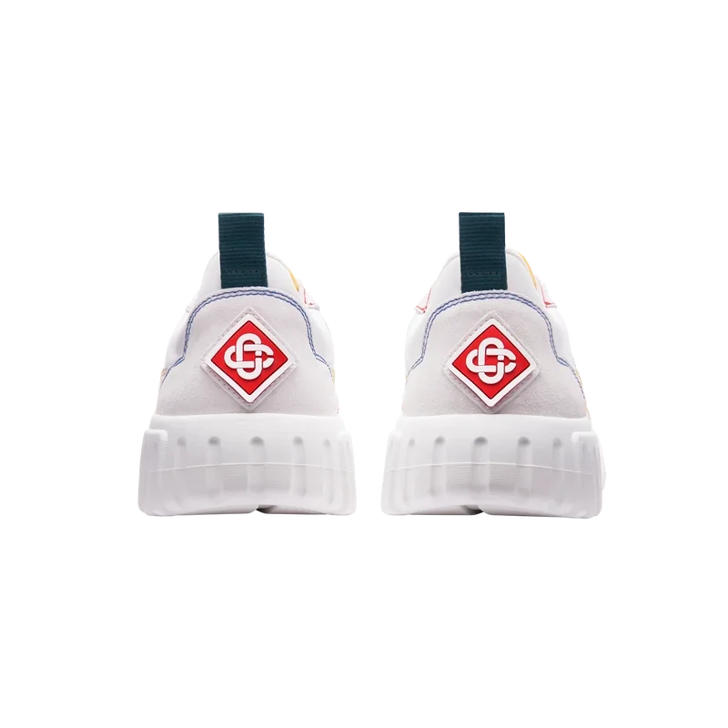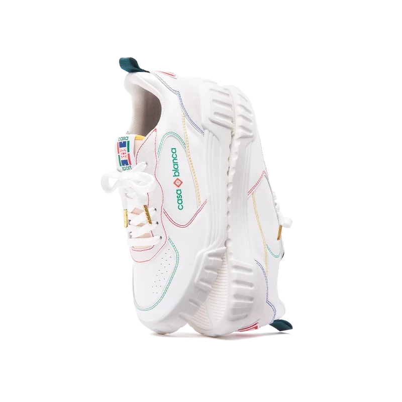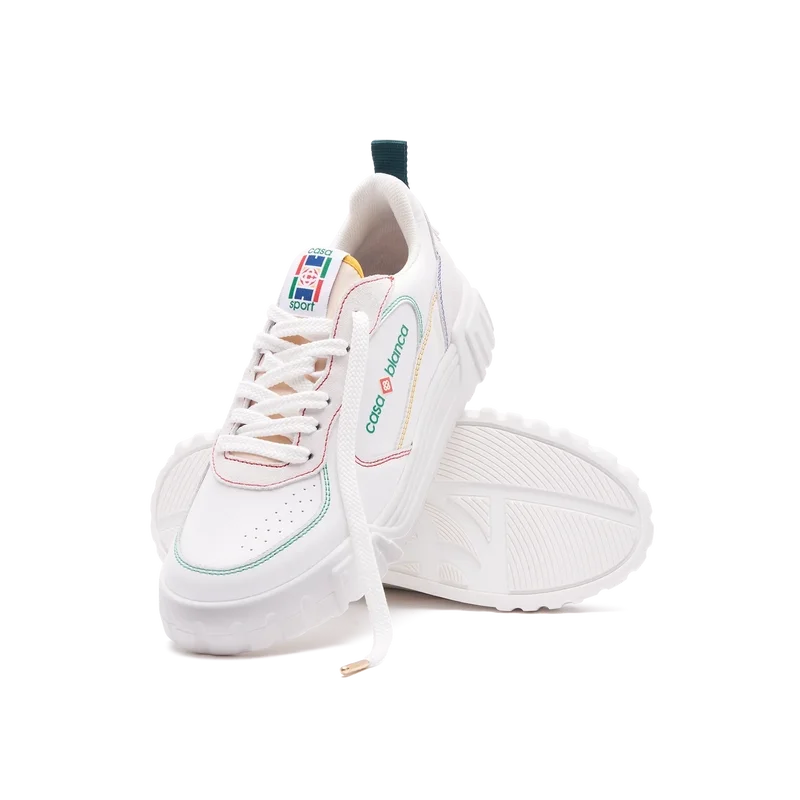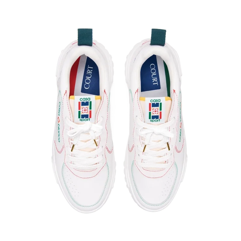 Il linguaggio stilistico delle sneakers Court riflette le silhouette iconiche degli anni ’90. I colori presenti nelle cuciture sono una combinazione dei codici raffinati del tennis e dell’architettura classica e creano una palette unificata su tutta la scarpa, con un’attenzione ai colori primari controbilanciati dal bianco del tennis per creare una storia cromatica incentrata sullo sport. Tomaia in pelle bianca tono su tono Patch in gomma con il diamante Casablanca sul tallone Logo Casablanca Sport in silicone sul lato laterale Etichetta Court intrecciata sulla linguetta Suola ispirata ai campi da tennis realizzata nei colori primari del tennis Punte dei lacci dorate Dazi e tasse Si prega di notare che ai clienti al di fuori dell’UE potrebbero essere addebitati dazi e tasse di importazione al momento della consegna. Si prega di verificare con l’ufficio doganale del proprio paese per determinare i dazi e le tasse di importazione locali prima dell’acquisto. Se si è indecisi tra due taglie, si consiglia di scegliere quella più piccola.