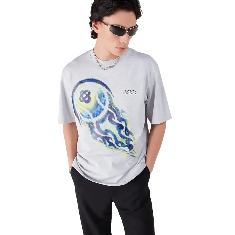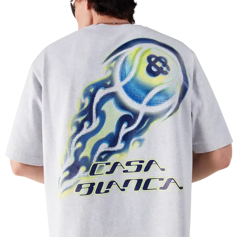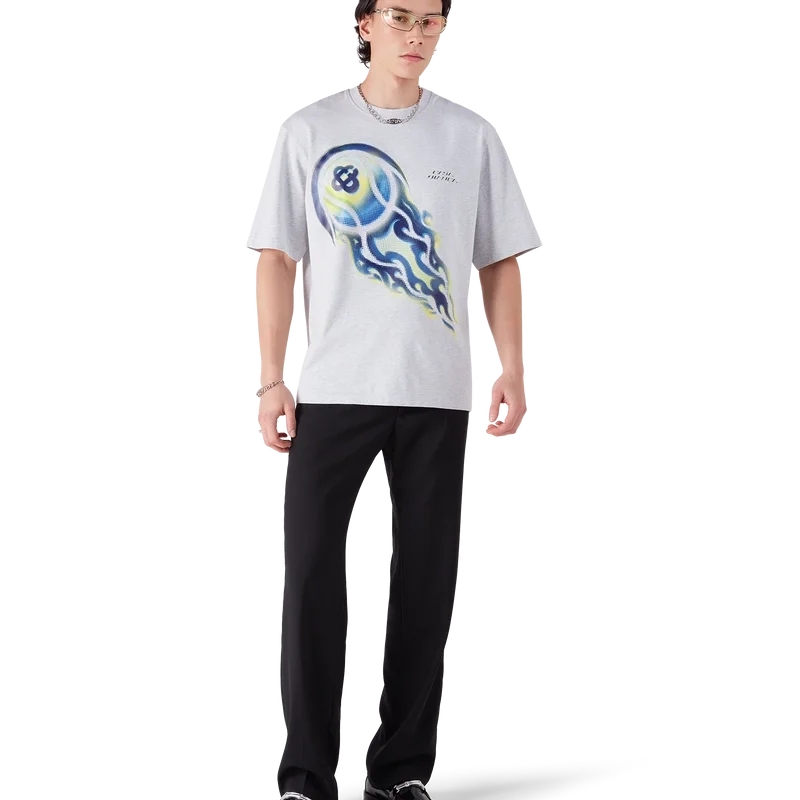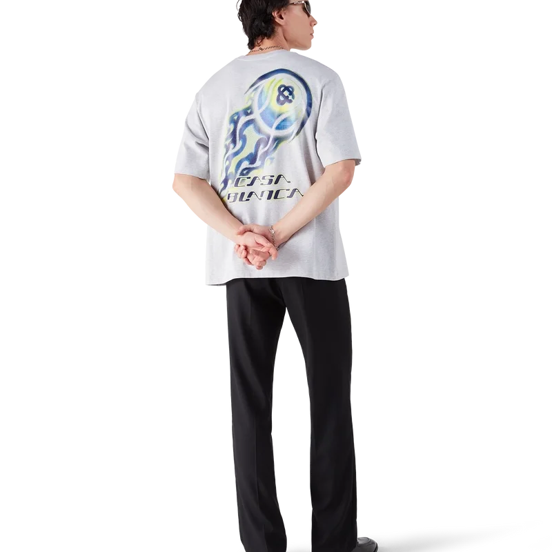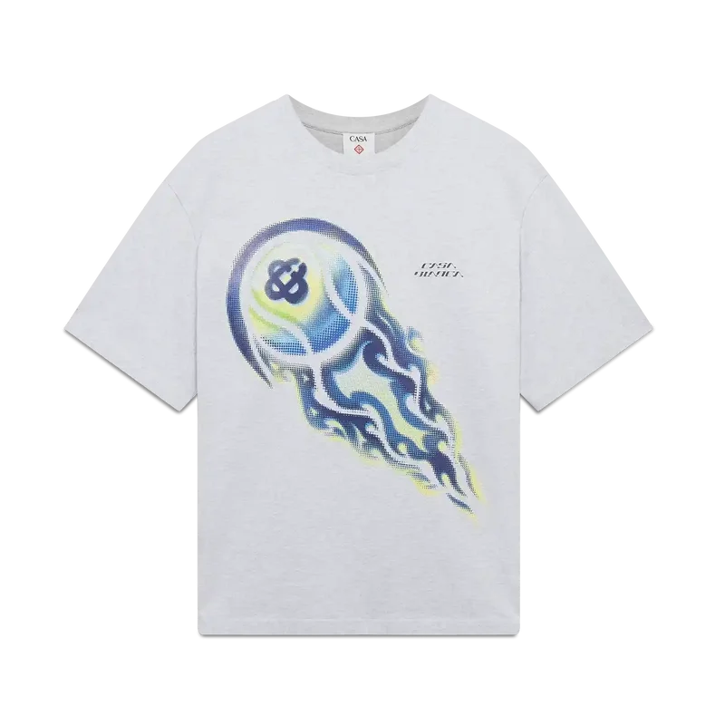 La T-shirt a pantaloncini oversize con pallina da tennis in fiamme è un modello che presenta una grafica con il caratteristico motivo della pallina da tennis della Maison raffigurata in volo, che incarna i principi essenziali di potenza, velocità e controllo. Completata da un classico girocollo e da una silhouette comoda.