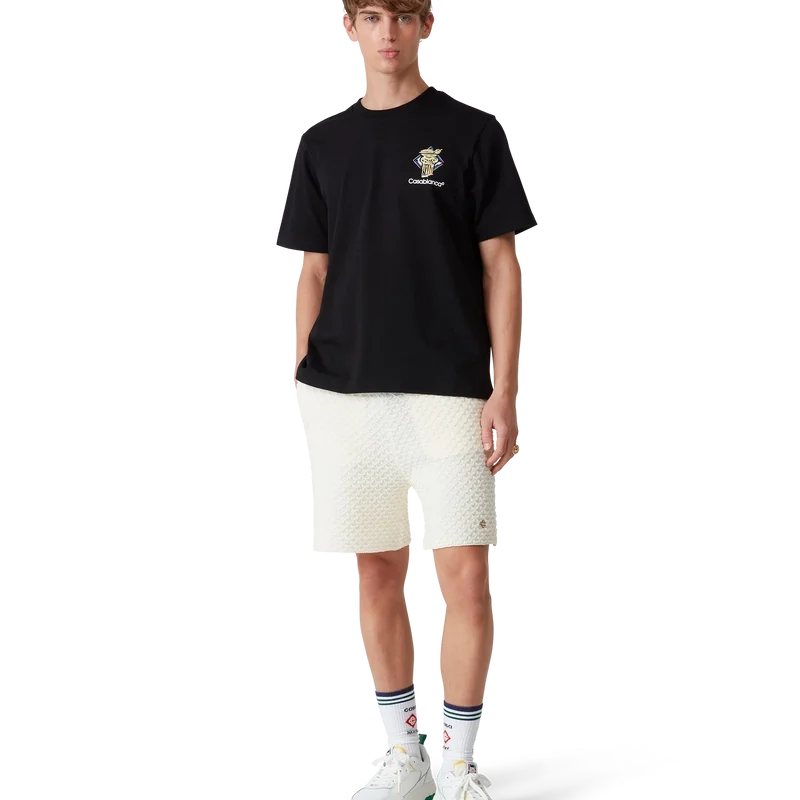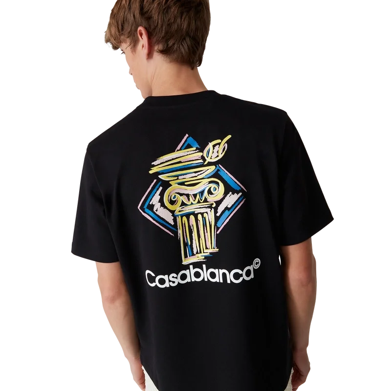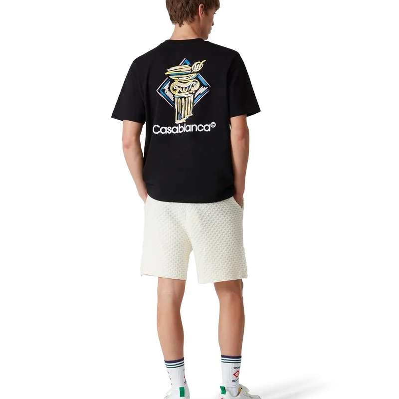 La T-shirt Diamond Column è un modello a maniche corte stampato, realizzato in tessuto di cotone biologico con l’iconografia a matita della Maison raffigurante una colonna. Completata da un classico girocollo e dal logo Casablanca.