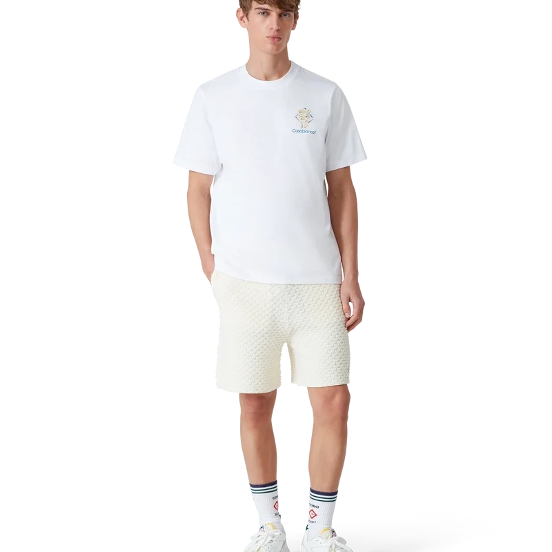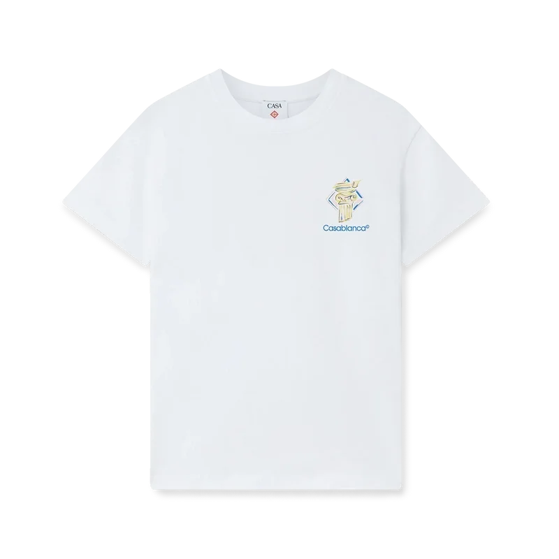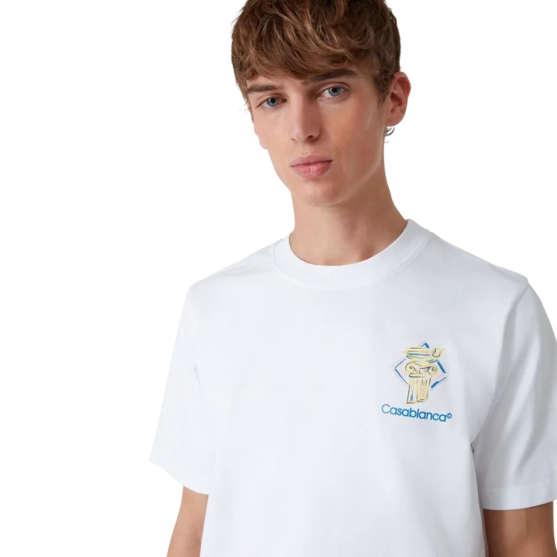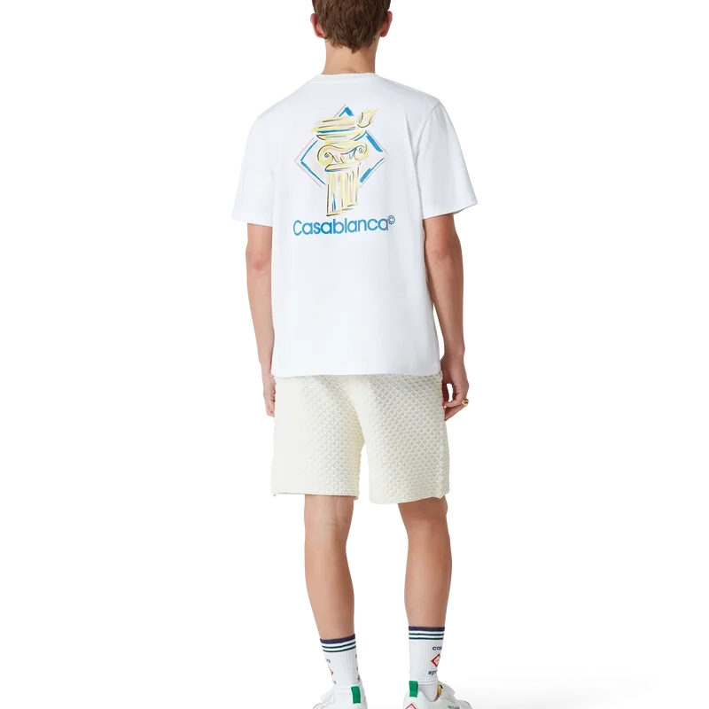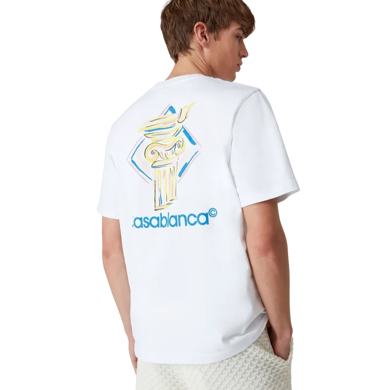 La T-shirt Diamond Column è un modello stampato a maniche corte realizzato in tessuto di cotone biologico con l’iconografia a matita della Maison raffigurante una colonna. Completata da un classico girocollo e dal logo Casablanca.