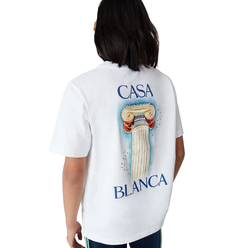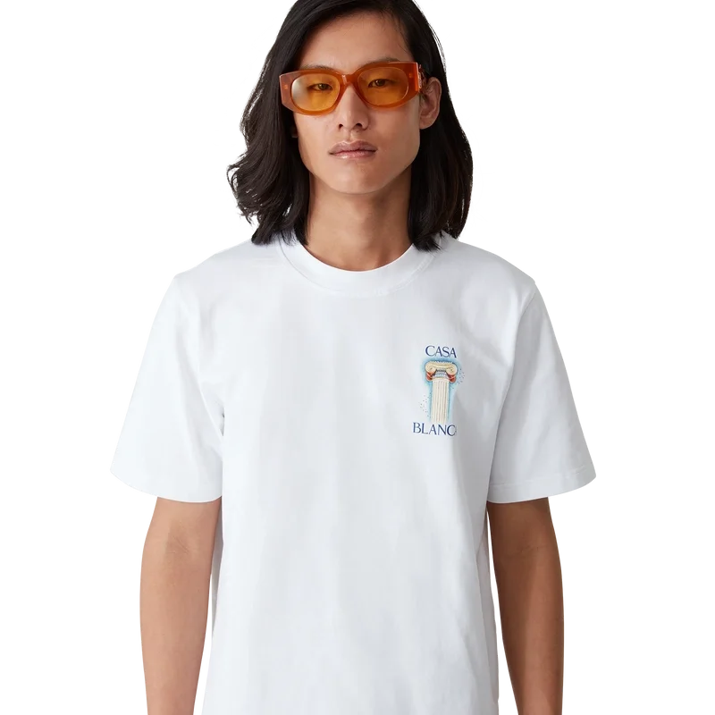 La T-shirt La Colonne è un modello stampato a maniche corte realizzato in tessuto di cotone biologico, caratterizzato dall’opera d’arte stagionale della Maison ispirata allo studio continuo della bellezza classica e del fascino contemporaneo dell’antica Grecia. Rifinita con un classico girocollo.
