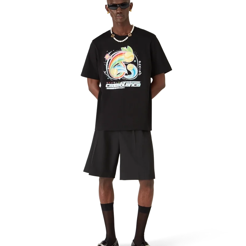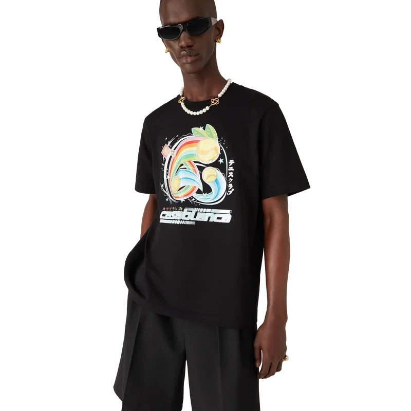 La T-shirt Manga Tennis Ball è un modello a maniche corte realizzato in tessuto di cotone biologico con una grafica stagionale che continua a esplorare il mondo del kawaii e dei manga, giocando con l’iconografia di Casablanca e utilizzando palline da tennis al posto delle arance per un tocco divertente. Completata da un classico girocollo.