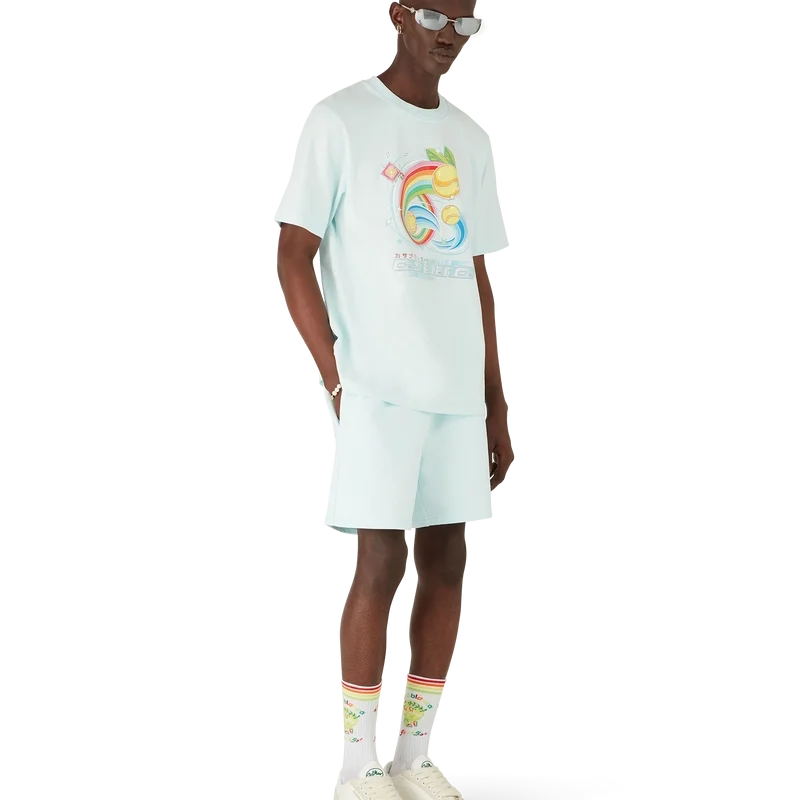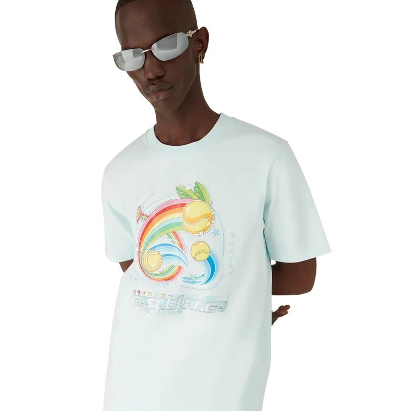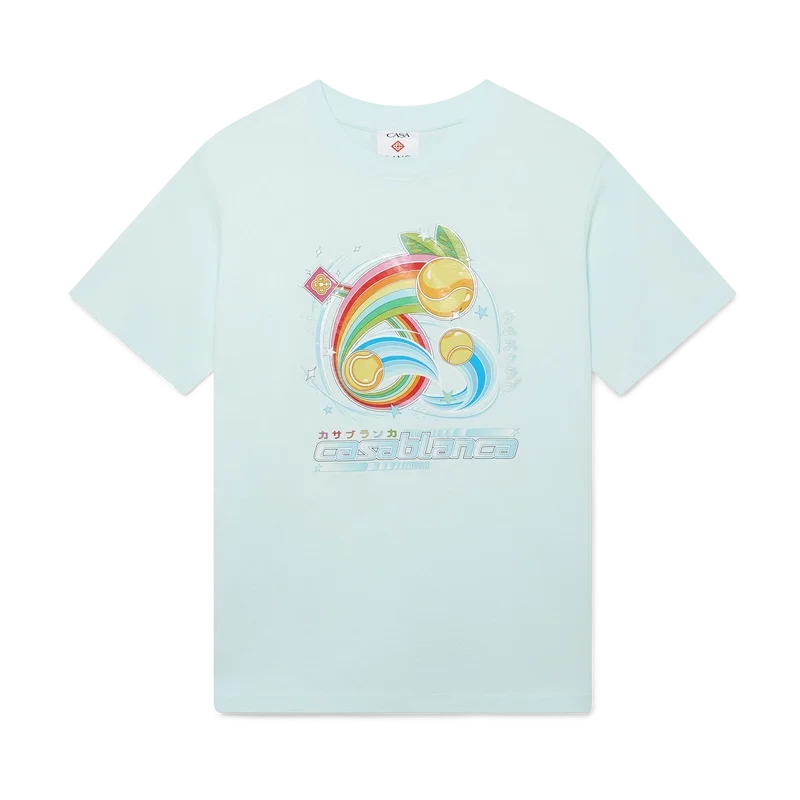 La T-shirt Manga Tennis Ball è un modello a maniche corte realizzato in tessuto di cotone biologico con una grafica stagionale che continua a esplorare il mondo del kawaii e dei manga, giocando con l’iconografia di Casablanca e utilizzando palline da tennis al posto delle arance per un tocco divertente. Completata da un classico girocollo.