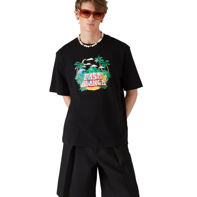 La T-shirt Casa Beach Wave è un modello a maniche corte stampato, realizzato in tessuto di cotone biologico e caratterizzato da una grafica distintiva che richiama le magliette souvenir che si comprano durante una vacanza al mare. Completata da un classico girocollo.