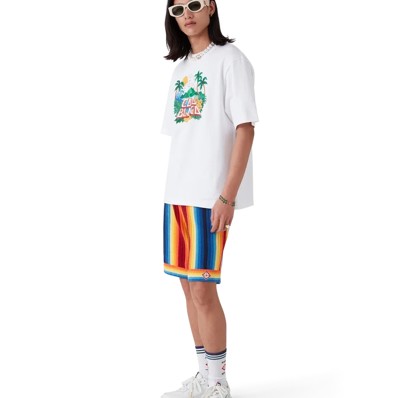 La T-shirt Casa Beach Wave è un modello a maniche corte stampato, realizzato in tessuto di cotone biologico e caratterizzato da una grafica distintiva che richiama le magliette souvenir che si comprano in vacanza al mare. Rifinita con un classico girocollo.