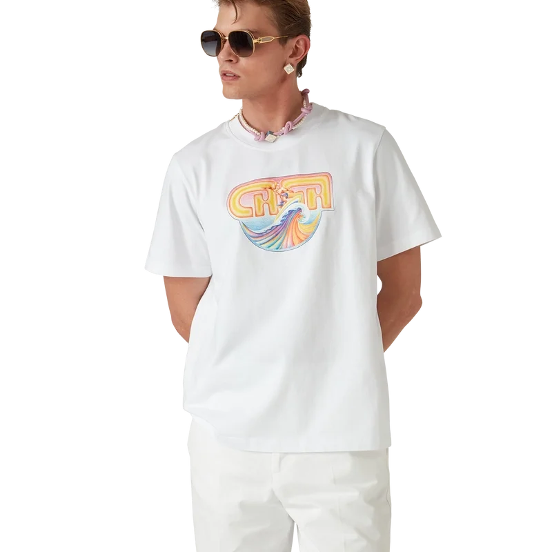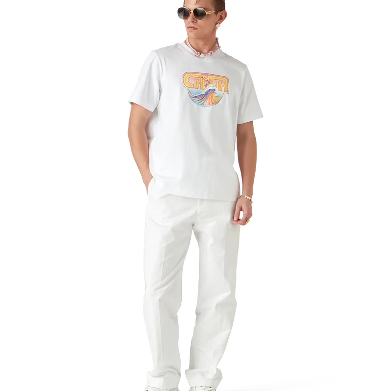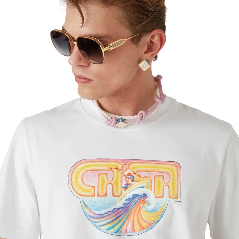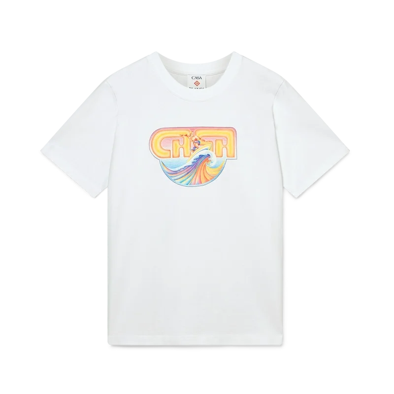 La T-shirt Casa Surf è un modello a maniche corte stampato, realizzato in tessuto di cotone biologico e caratterizzato da una grafica stagionale ispirata alle tavole da surf vintage sbiadite dal sole degli anni ’70. Completata da un classico girocollo.
