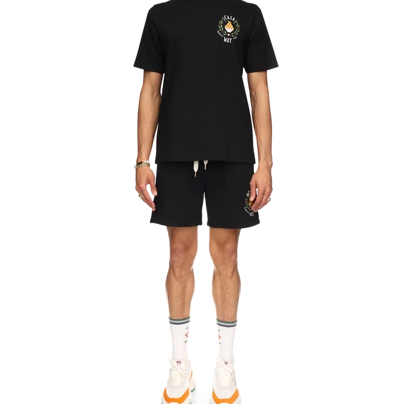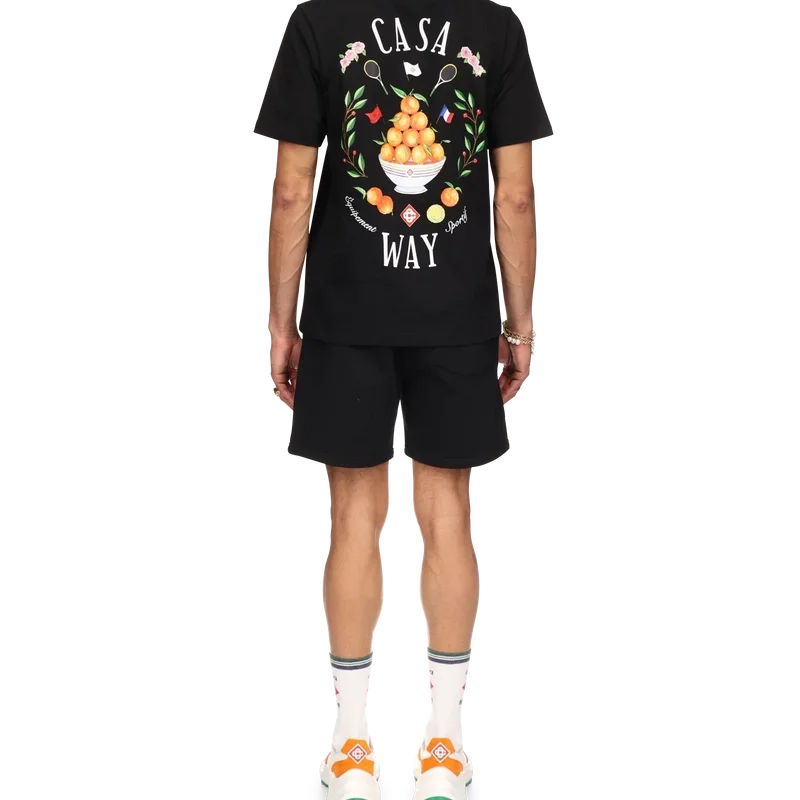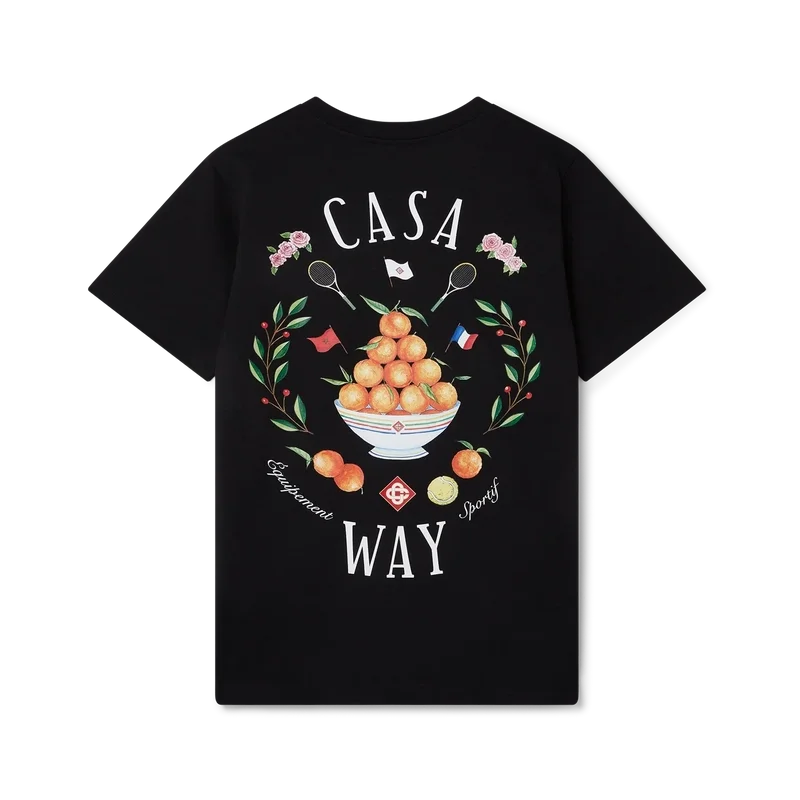 La T-shirt Casa Way presenta una stampa dell’iconografia classica della casa con la piramide arancione, le racchette da tennis e il motivo floreale ripetuto in una stampa più grande sul retro. Realizzata in cotone biologico al 100% e rifinita con un classico girocollo e un’etichetta con il marchio Casablanca.