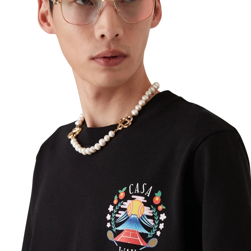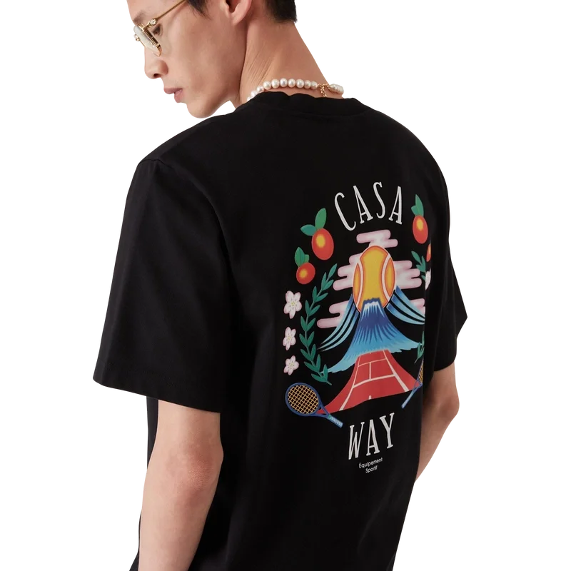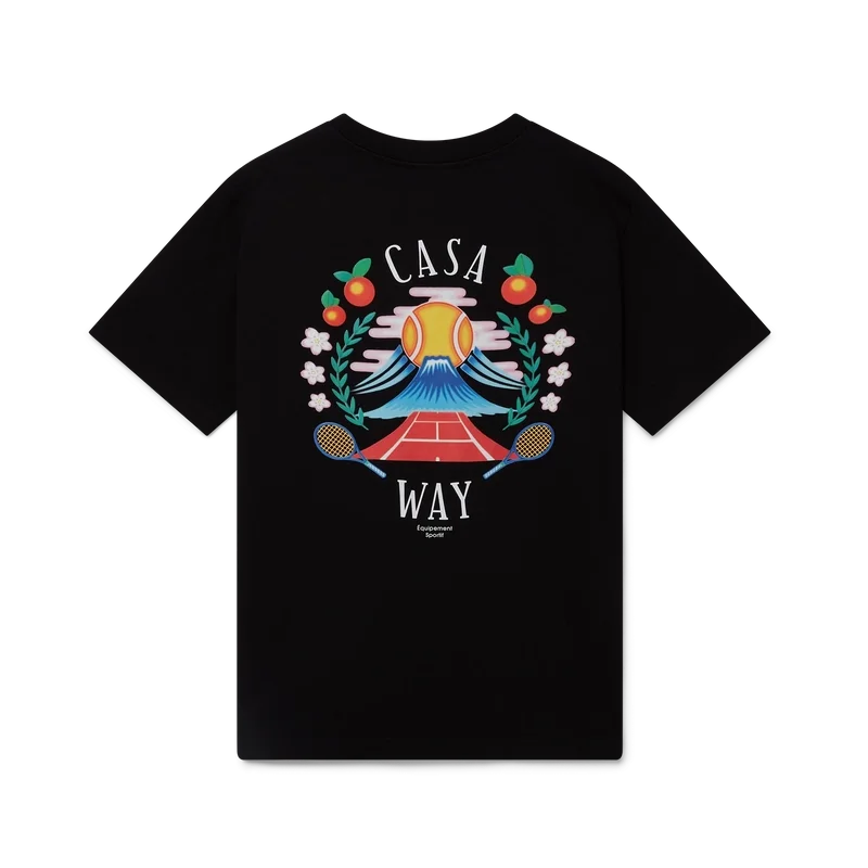 La T-shirt Casa Way Mountain è un modello a maniche corte realizzato in tessuto di cotone biologico e presenta la grafica stagionale della casa che segue la storia dello stile iconografico che abbiamo esplorato: una grafica realizzata digitalmente che mette in risalto il nostro logo Mountain, con linee e sfumature diverse, che creano un forte branding. Completata da un classico girocollo.
