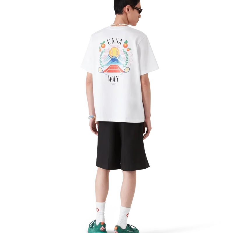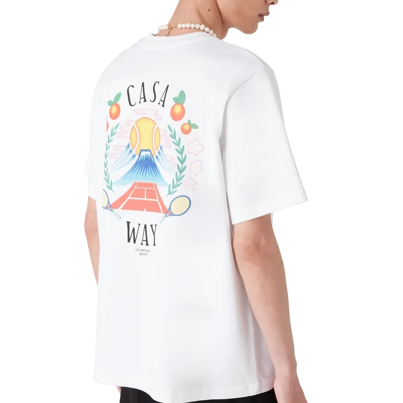 La T-shirt Casa Way Mountain è un modello a maniche corte realizzato in tessuto di cotone biologico e presenta la grafica stagionale del marchio reinterpretata per questa stagione. Rifinita con un classico girocollo.