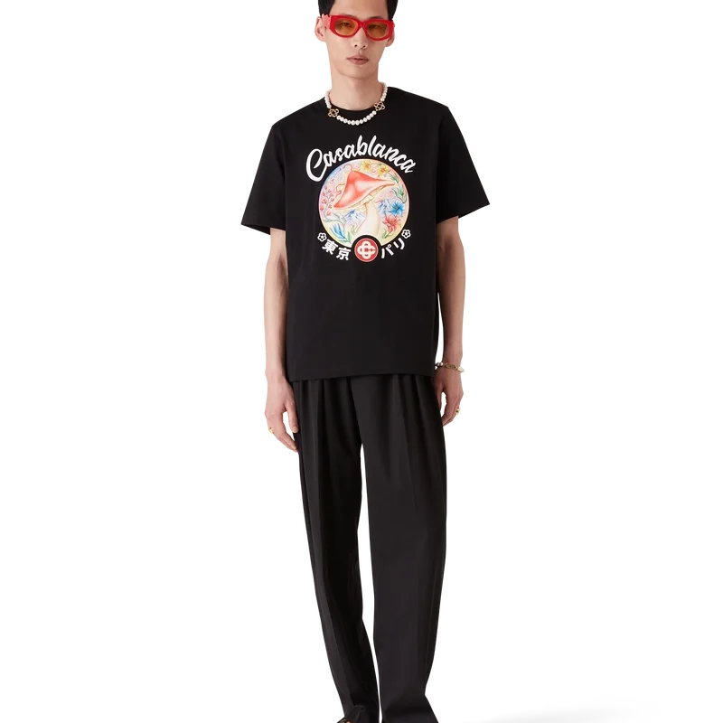 La T-shirt con emblema a forma di fungo è un modello a maniche corte realizzato in tessuto di cotone biologico e presenta la grafica distintiva del marchio che raffigura uno degli elementi di design della casa – il fungo – reinterpretato per questa stagione. Completata da un classico girocollo.