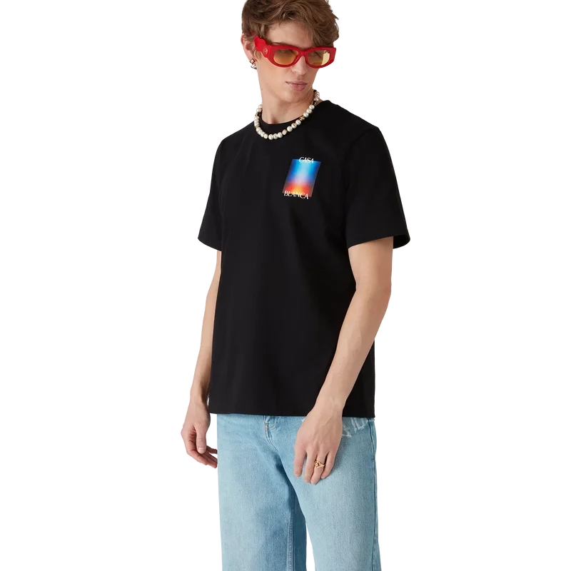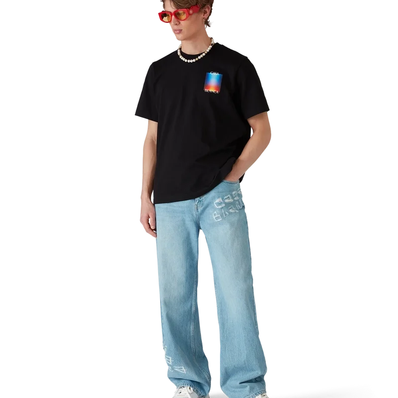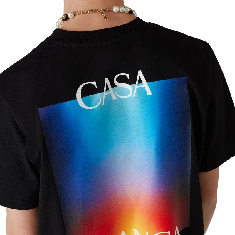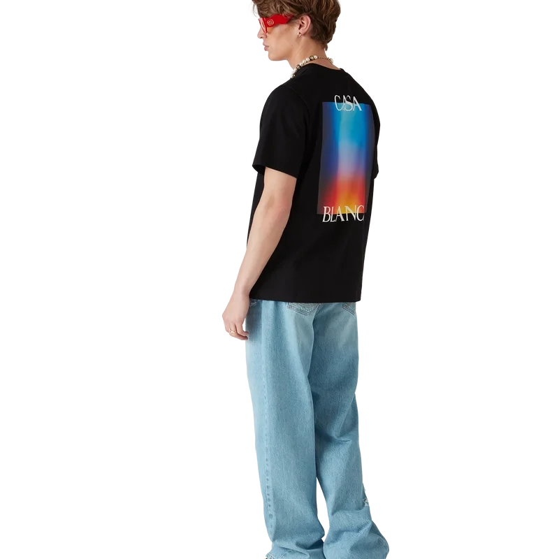 La T-shirt con logo Gradient Casa è un modello stampato a maniche corte realizzato in tessuto di cotone biologico, caratterizzato dal gradiente stagionale della Maison ispirato a un’interpretazione futuristica del gradiente Casablanca: una forma ad aureola ispirata ai poster e ai dischi vintage di fantascienza. Rifinita con un classico girocollo.
