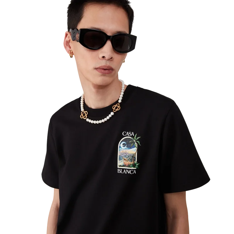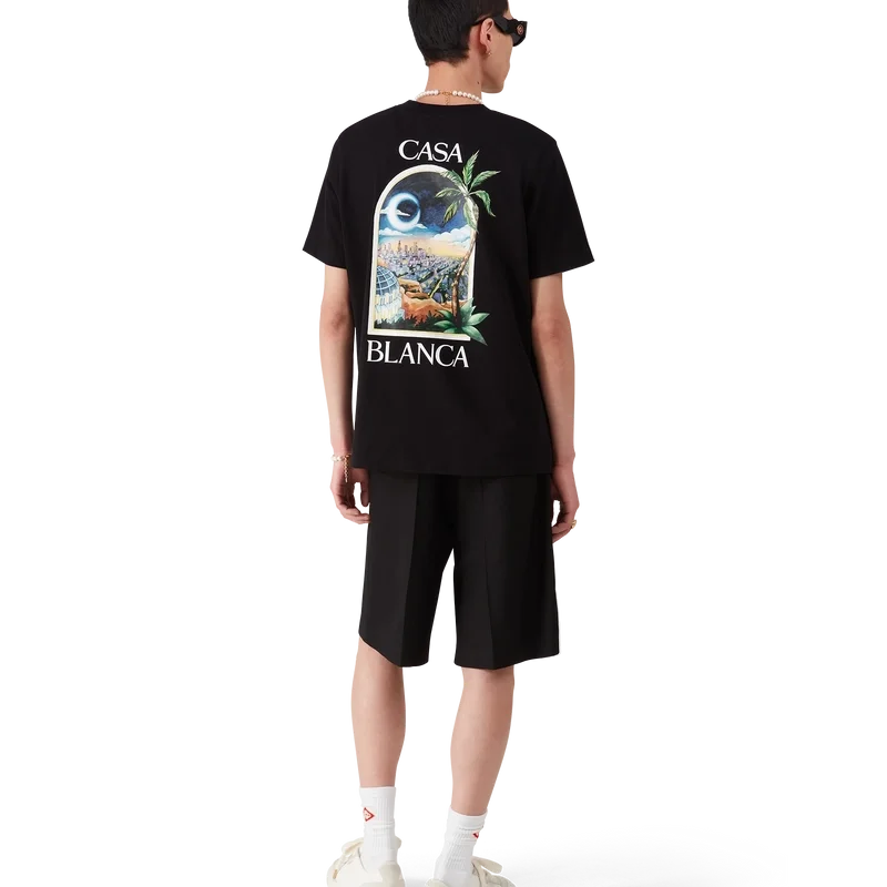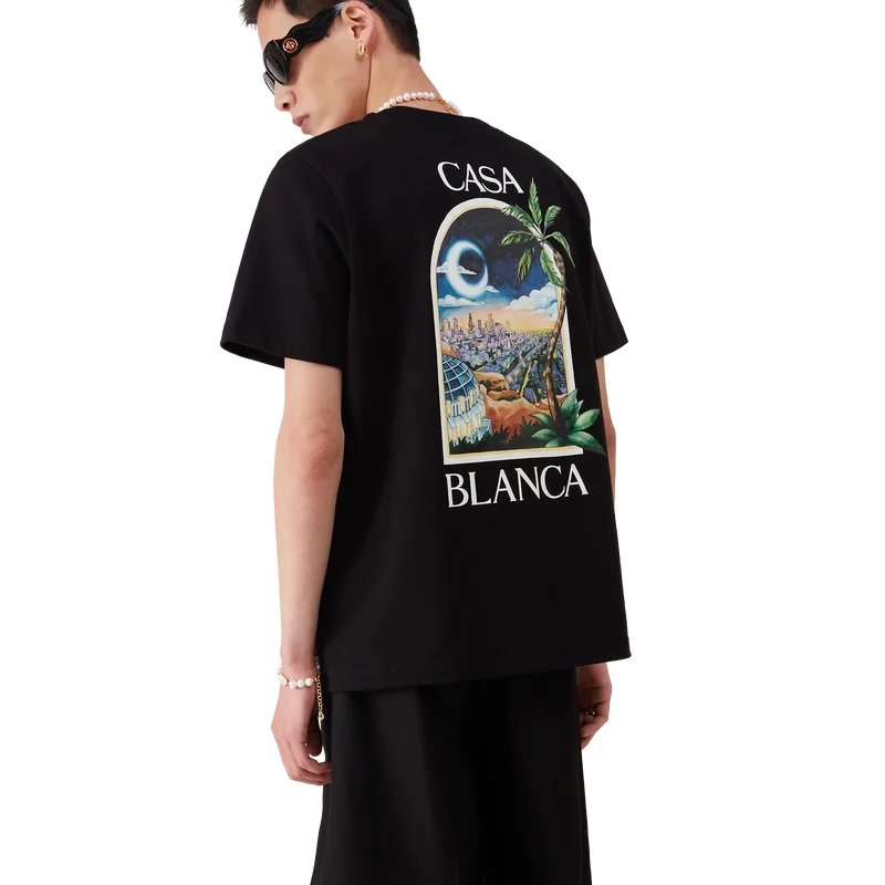 La T-shirt La Nights è un modello a maniche corte stampato, realizzato in tessuto di cotone biologico e caratterizzato da una grafica distintiva che raffigura una finestra su un paesaggio notturno di Los Angeles. Rifinita con un classico girocollo.