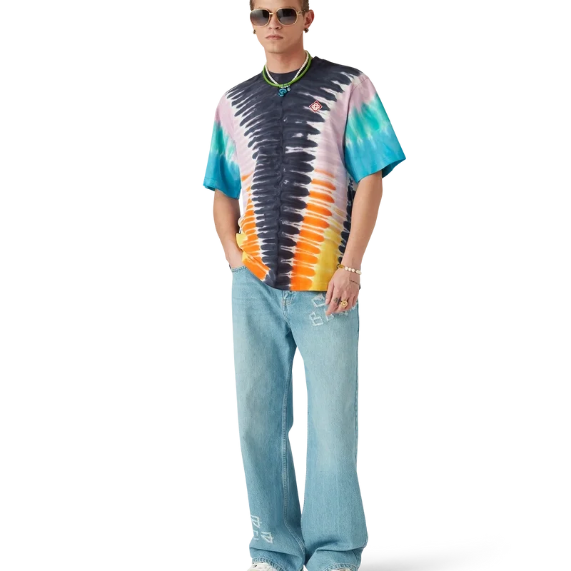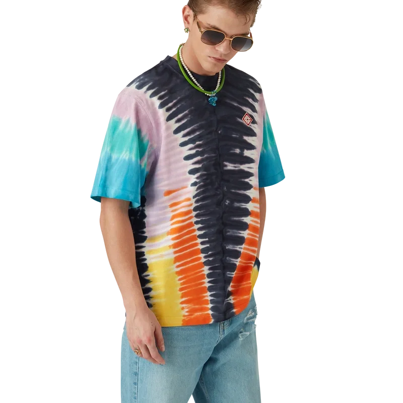 La maglietta Gradient Tie Dye è un modello stampato a maniche corte realizzato in cotone biologico e caratterizzato da una grafica tie-dye distintiva che richiama le T-shirt souvenir che si comprano durante una vacanza al mare. Completata da un classico girocollo e dal caratteristico logo a rombo.